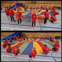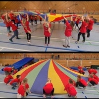 Ob bei den spannenden Rollbrettstaffeln, den mitreißenden Handballspielen oder beim Ausprobieren des vielfältigen Sport- und Spieleangebots – überall waren unsere Schülerinnen und Schüler mit vollem Engagement dabei. Besonders schön war zu sehen, wie fair und motiviert die Kinder miteinander umgingen und sich gegenseitig unterstützten.